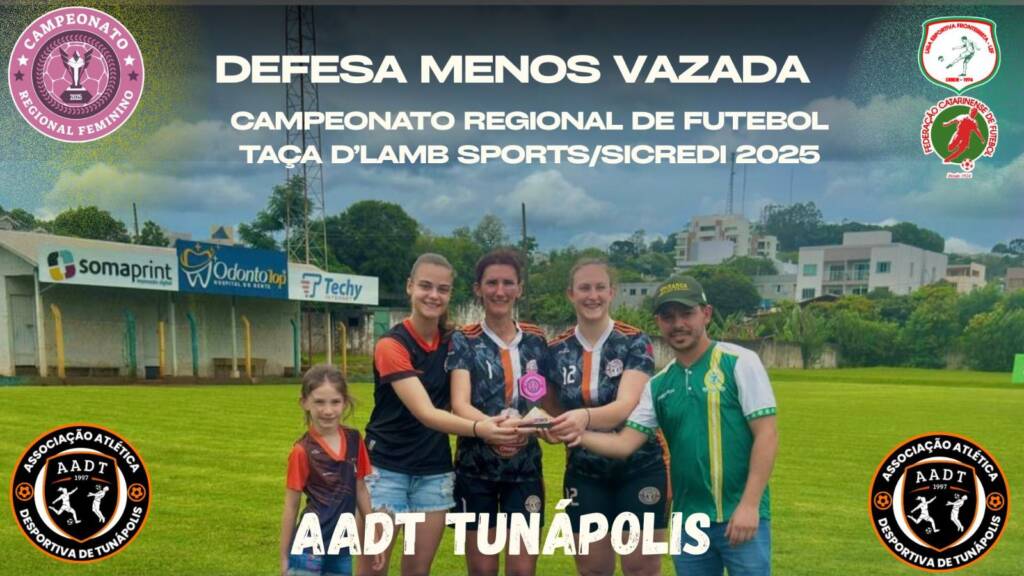 A equipe da AADT, de Tunápolis conquistou o título do Campeonato Regional de Futebol Feminino 2025, competição organizada pela Liga Esportiva Fronteirista (LEF). O jogo da volta da final entre as equipes do Ypiranga e AADT aconteceu no domingo, 21, em São José do Cedro. Após a vitória da equipe da AADT no jogo de ida em Tunápolis por 4 a 0, no confronto da volta o Ypiranga venceu por 2 a 0. Com o resultado, a AADT sagrou-se campeã. Com o título em 2025, a equipe é tetracampeã da competição