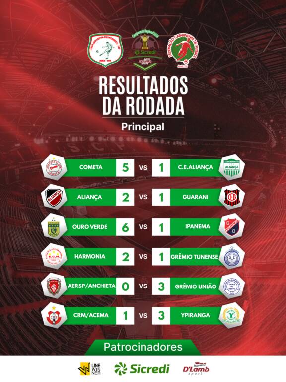Aconteceu no último domingo, 18, a segunda rodada do Campeonato Regional Taça D’Lamb Sport Sicredi 2026. Confira os resultados das categorias Sub-18 e Principal a seguir: