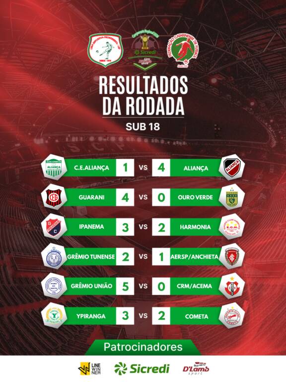 Aconteceu no domingo, 25, a terceira rodada do Campeonato Regional Taça D’Lamb Sport Sicredi 2026. Confira os resultados das categorias Sub-18 e Principal a seguir: