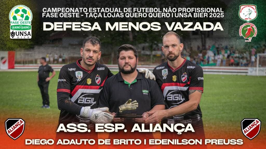 Defesa menos vazada: Associação Esportiva Aliança, com apenas 6 gols sofridos em 12 partidas, prêmio recebido pelos goleiros Diego Adauto de Brito e Edenison Preuss.