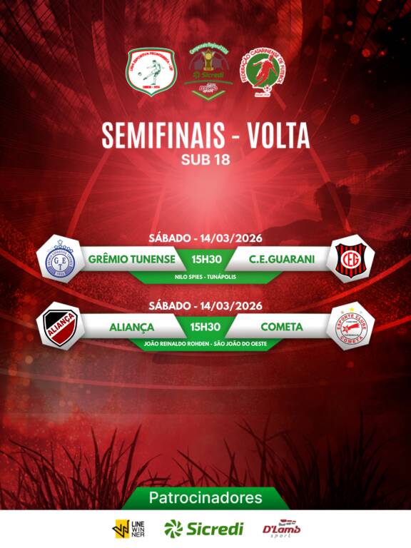 Fim de papo nos primeiros 90 minutos nos jogos de ida das semifinais do Campeonato Regional Taça D’Lamb Sport Sicredi 2026, categoria Sub-18.